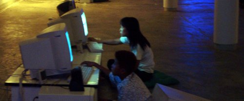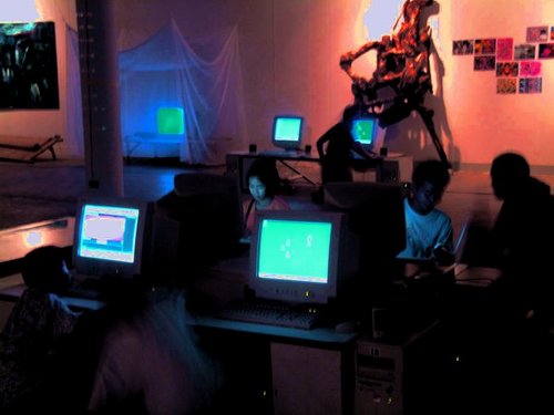 to a large database of new media artworks and powerful PCs installed with