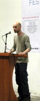 of Architecture. Lars Akerlund (Sweden) in rear center giving his performance |