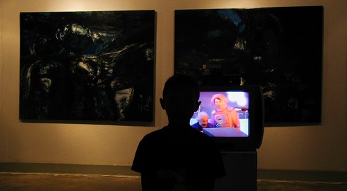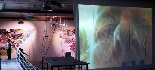new media works were juxtaposed with traditional abstract paintings