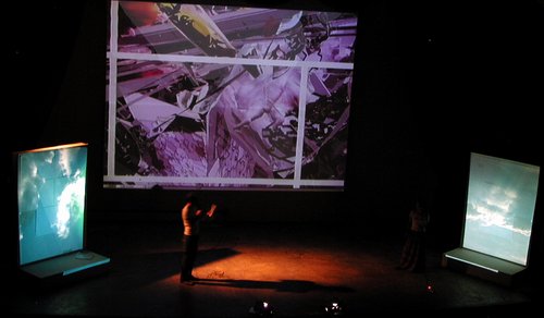 by Martin Schimd. (Translator in the center is part of the performance) |
