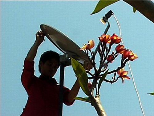 dish on the museum's roof for high speed Internet connectivity at the festival |