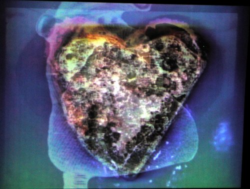 DVD, clay and wood together at the New Media Art Festival. On the screen: