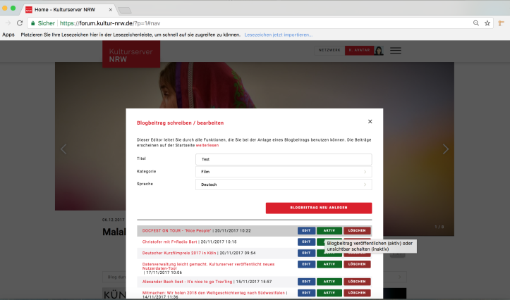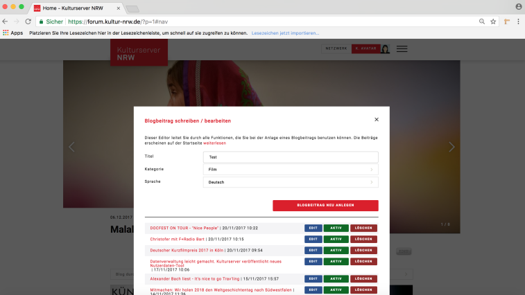 Sollten Sie auf Kulturserver NRW oder einer Website im Culturebase-Umfeld bloggen wollen, gehen Sie wie folgt vor: