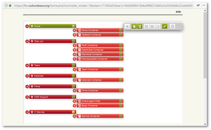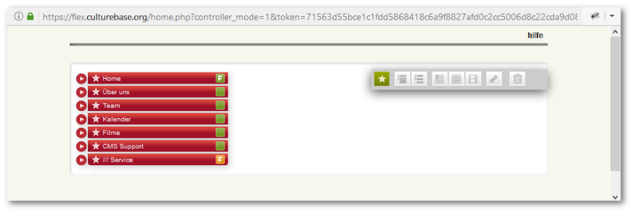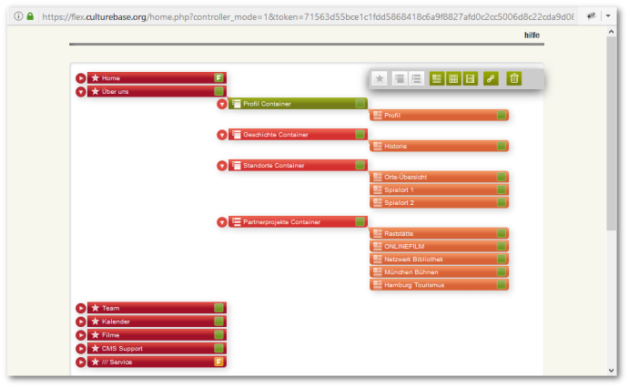 1. Die Werkzeugleiste dient zur Anlage der Seitenstruktur. Auf jeder Ebene sind die Funktionen aktiv, die Sie hier benutzen können.