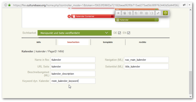 URLs und Namen von Menüpunkten/Seitentiteln bearbeiten // Kalenderkeywords eintragen