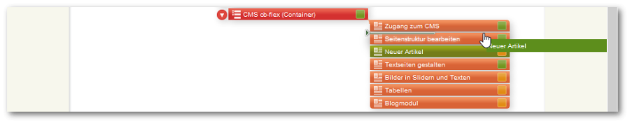 Sie können jeden Knoten innerhalb einer Strukturebene per Drag & Drop an eine andere Stelle verschieben. So ändern Sie entweder die Reihenfolge der Menüpunkte oder ordnen einzelne Knoten anderen Hauptmenüpunkten zu.