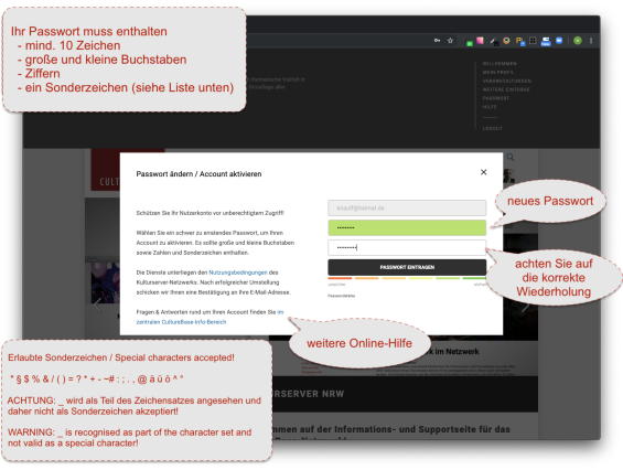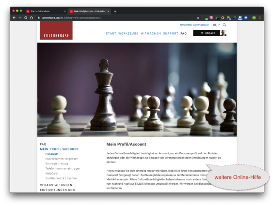 5. Passwort erneuern - weitere Hilfe im CultureBase Info Hub