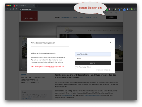 1. Passwort erneuern - rufen Sie Culturebase auf.
